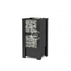 В печь можно загрузить около 65 кг камней по всей высоте печи. Большой объём качественно прогретых камней смягчает жёсткую конвекцию от нагревательных элементов и, эффективно испаряя воду, создаёт комфортный микроклимат и мягкий лёгкий пар.
