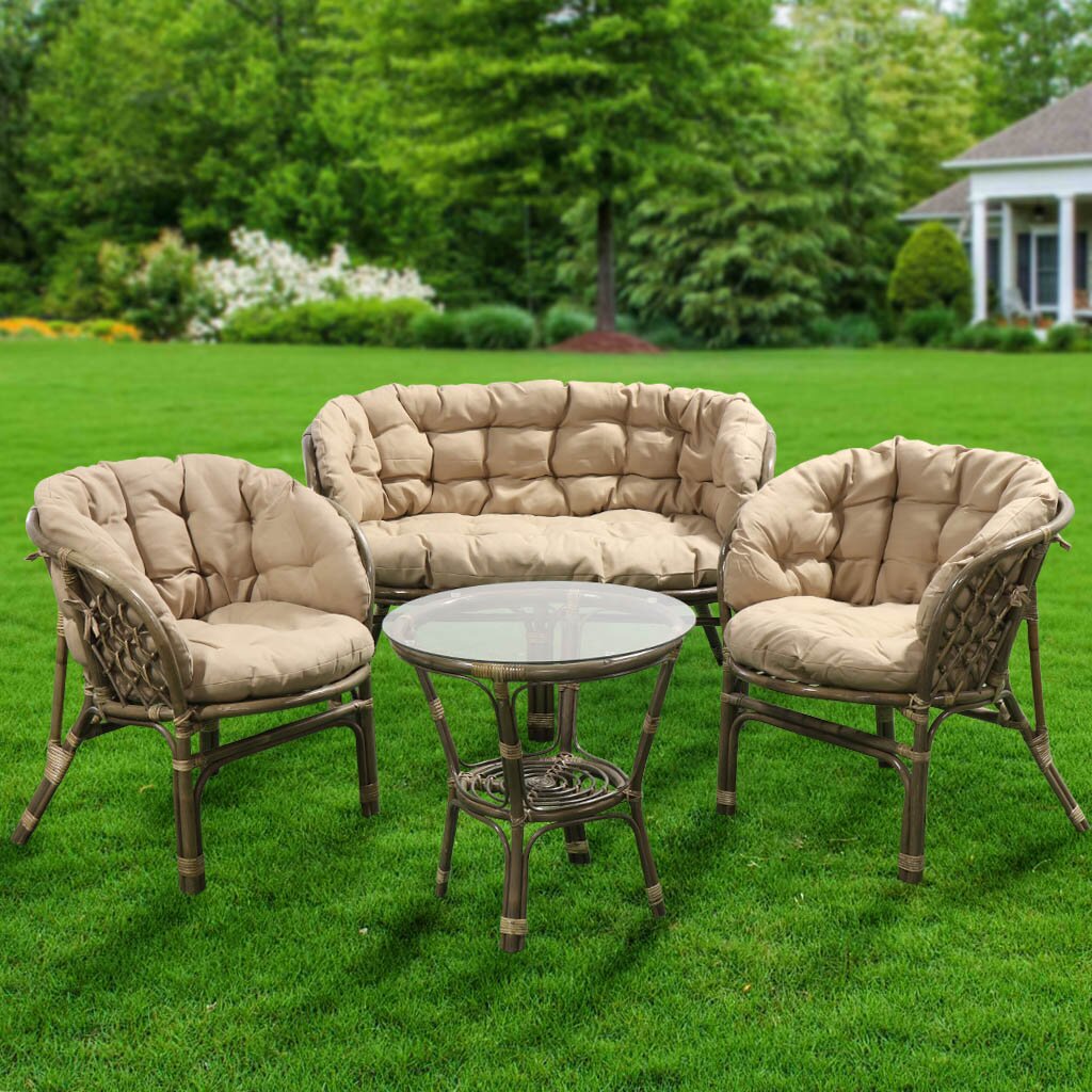 Набор мебели Мальдивы стол 55х55х56 + 2кресла+1 диван, подушка бежевая