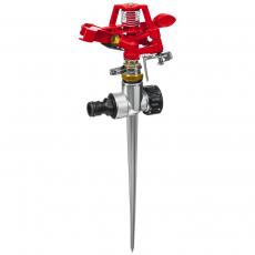 Конструкция распылителя позволяет обрабатывать любой сектор, а также полный круг. Щадящий способ полива сохранит чувствительные растения целыми и невредимыми. Два соединительных гнезда позволяют создать цепочку из распылителей. Конструкция из современного металла гарантирует прочность и долговечность изделия. Надёжно фиксируется в почве пластиковой пикой.