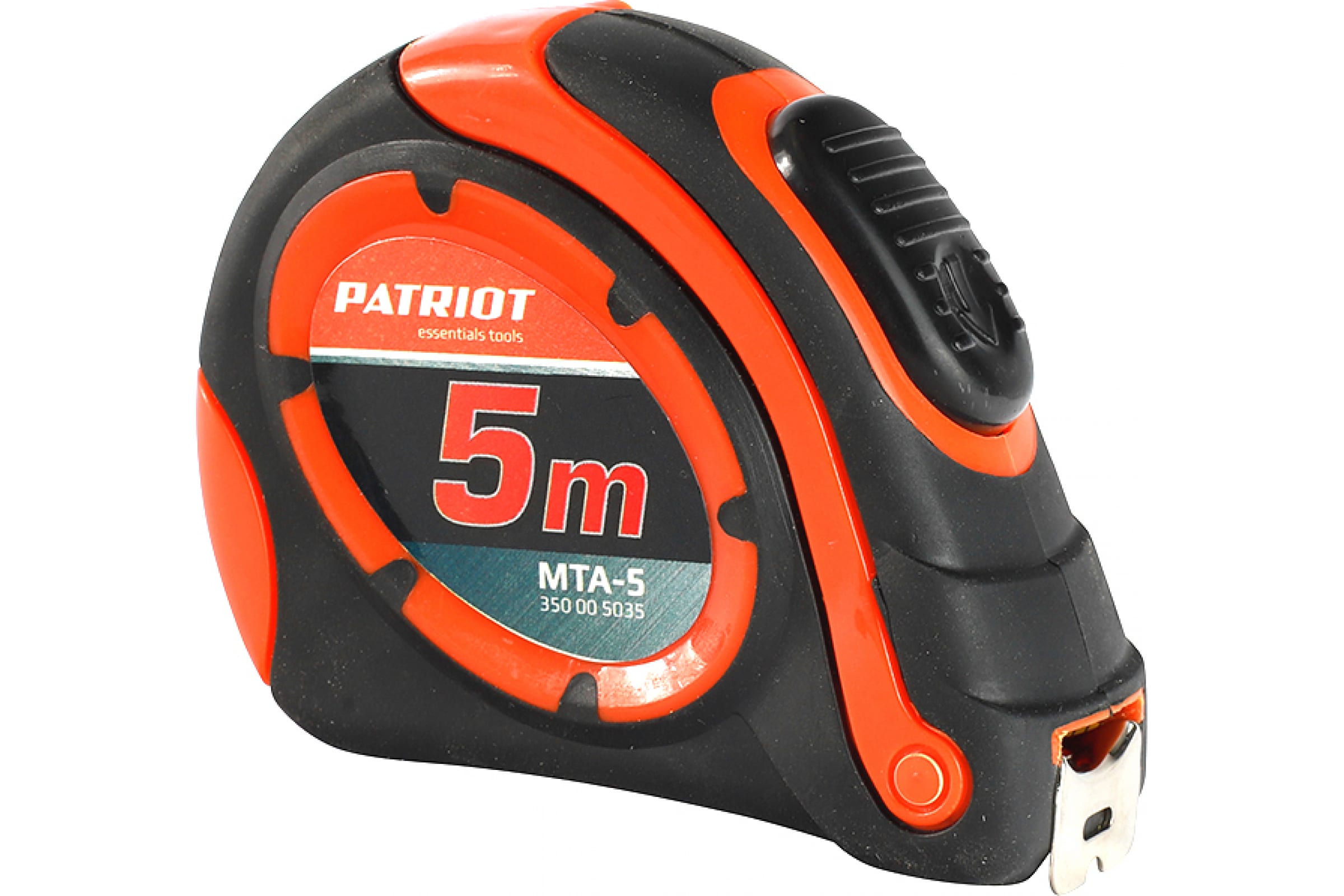 Рулетка 5м Patriot MTA-5 автостоп, ударопрочный корпус, обрезиненная