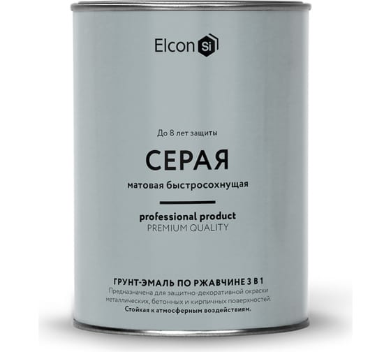 Грунт - эмаль по ржавчине Elcon 3 в 1 матовая,серая 0.8 кг предназначена для нанесения как на чистые, так и на пораженные коррозией металлические поверхности с целью создания надежной антикоррозионной защиты металлоконструкций, оборудования, металлических изделий.