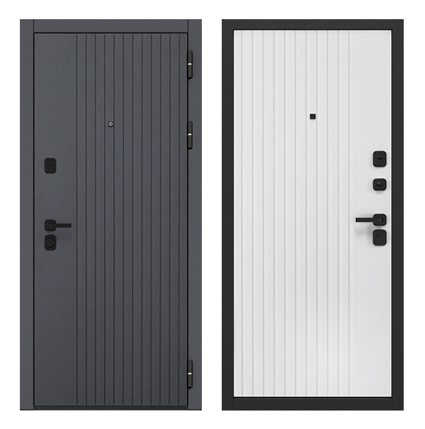 Входная дверь Luxor 2МДФ Вертикаль. Дверь российского производства. Толщина металла – 1,5 мм, толщина дверного полотна – 100 мм. Заполнение – пенополистирол. 3 контура уплотнителя из вспененной резины. Высокий уровень шумоизоляции. Замки KALE, IV (наивысший) класс взломостойкости, диаметр ригелей: 16 мм; цилиндровый / сувальдный - доп.защита от высверливания: две пластины из высоколегированной стали с обеих сторон замка; Имеется задвижка «ночной сторож». Внешнее/внутренее покрытие: фрезерованная МДФ-панель 12 мм (цвет "сатин графит")/ фрезерованная МДФ-панель 10 мм (цвет "эмалит белый")
