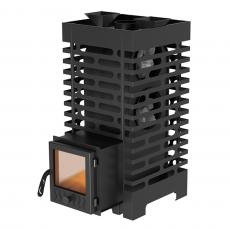 Глубокая невентилируемая каменка-труба из стали 09Г2С толщиной 4 мм прогревается открытым пламенем для максимального нагрева камней, заложенных в нее и выполняет роль пламегасителя.