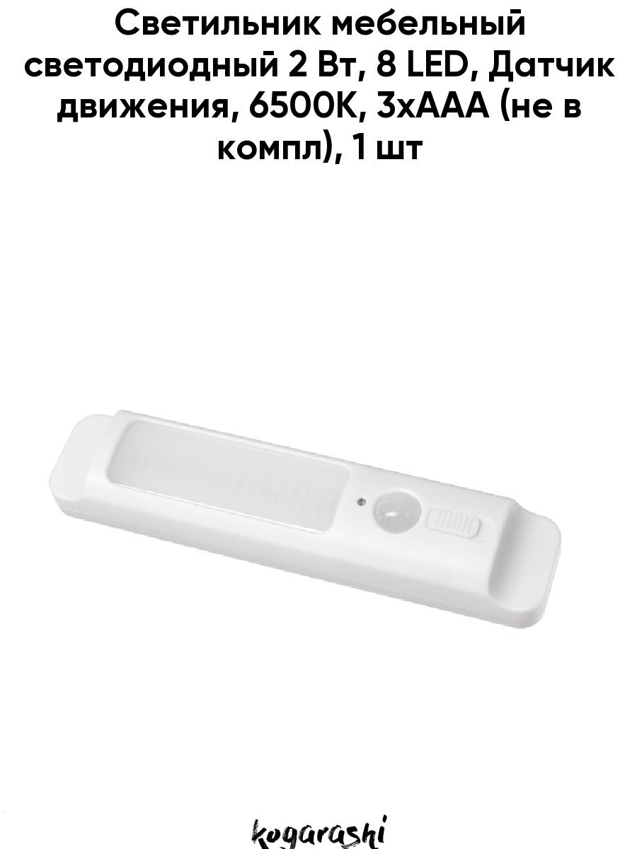Светильник мебельный светодиодный 2 Вт. 8 LED. Датчик движения. 6500K. 3xААА (не в компл). 1 шт