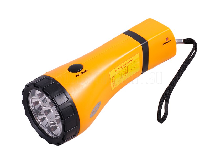 Классический ручной фонарь, имеющий уникальную систему заряда: в тыльную часть корпуса вставляется картридж-аккумулятор, который имеет собственную вилку и заряжается от сети отдельно от фонаря.