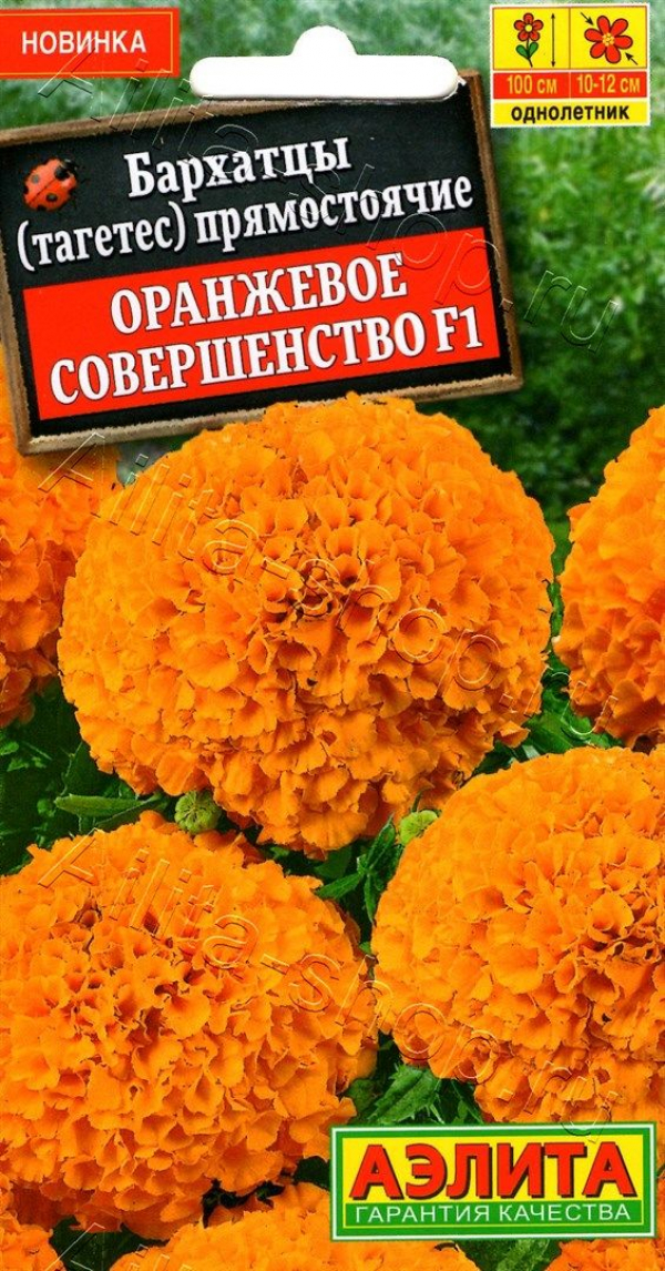 Предлагаем новый гибрид бархатцев: крупные выразительные густомахровые цветки диаметром 10-12 см обязательно привлекут ваше внимание! Цветение обильное и продолжительное – вплоть до заморозков. Куст вырастает до 1 м высотой. И становится пушистым за счет множества цветков и сильнорассеченных листьев. Несмотря на большую высоту, бархатцы сохраняют устойчивость после ливней и порывов ветра. Гибрид идеально подходит для создания яркого плотного фона в высокорослых клумбах, миксбордерах, пригоден для срезки.