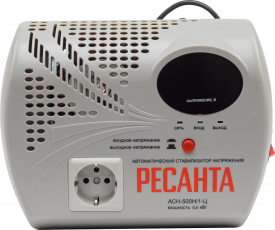 Стабилизатор напряжения серии LUX РЕСАНТА АСН-500Н/1-Ц релейного типа предназначен для выравнивания входного напряжения и защиты приборов от перепадов напряжения с суммарной мощностью до 0,5 кВт.