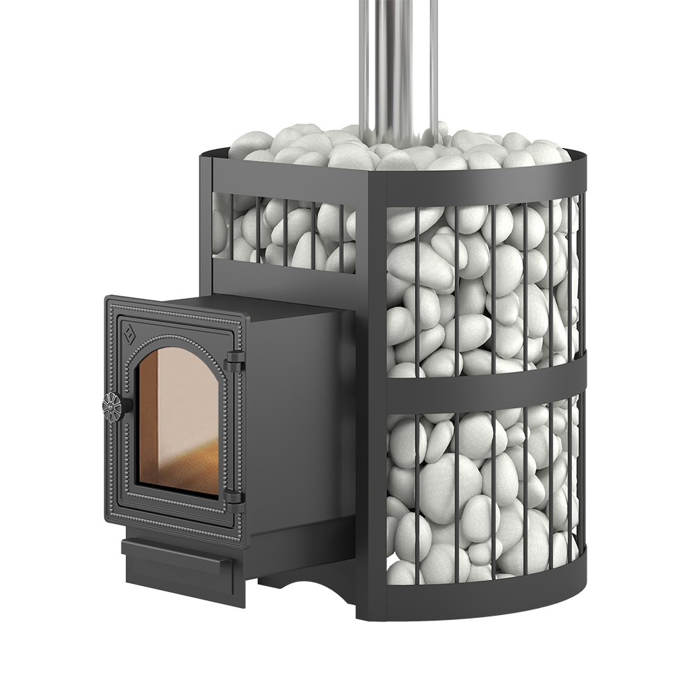 Топочный тоннель из особо прочной стали предназначен для вывода топочной дверцы в смежное с парилкой помещение. Длина тоннеля достаточна для прохождения через стену толщиной 20 сантиметров.
