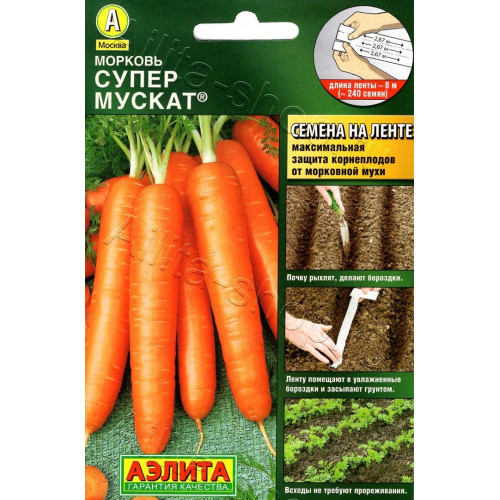 Посев: почву разрыхляют. Ленту помещают в хорошо увлажненные бороздки на подготовленной грядке, на глубину 1,5-2 см и засыпают грунтом, поливают. ДО ПОЯВЛЕНИЯ ВСХОДОВ ГРЯДКУ НАКРЫВАЮТ ПЛЕНКОЙ, ПОДДЕРЖИВАЯ ВЕРХНИЙ СЛОЙ ПОЧВЫ ВО ВЛАЖНОМ СОСТОЯНИИ (НЕ ДОПУСКАЯ ПЕРЕСЫХАНИЯ ЛЕНТЫ). Благодаря идеальному расположению семян на ленте (на расстоянии 3-3,5 см) всходы не требуют прореживания, и растения могут равномерно развиваться. Это сводит к минимуму повреждение корнеплодов морковной мухой, так как ее привлекает запах морковной ботвы, усиливающийся при прореживании. Дальнейший уход заключается в прополках, поливах и рыхлении почвы. Наслаждайтесь сладкой и здоровой морковью со своего огорода!