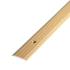 Данная модель предназначена для скрытия стыков двух одноуровневых напольных покрытий, изготовленных из различных материалов. Пороги с отверстиями для монтажа поставляются в индивидуальной упаковке с саморезами (d 3,0 мм х 25,0 мм) и дюбелями.