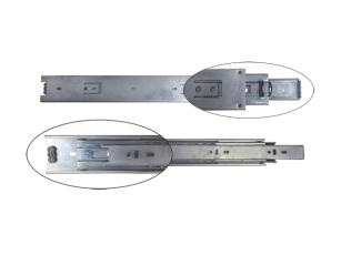 после установки в изделии обе половинки направляющей необходимо совместить друг с другом и задвинуть ящик пока не раздастся щелчок. Выдвижение происходит за счет нескольких рядов шариков, удерживаемых клетках, перемежающихся в специальных пазах.