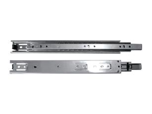 после установки в изделии обе половинки направляющей необходимо совместить друг с другом и задвинуть ящик пока не раздастся щелчок. Выдвижение происходит за счет нескольких рядов шариков, удерживаемых клетках, перемежающихся в специальных пазах.