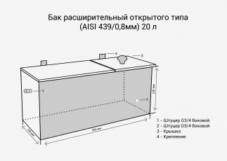 Бак расширительный открытого типа (AISI 439/0,8мм) 20л