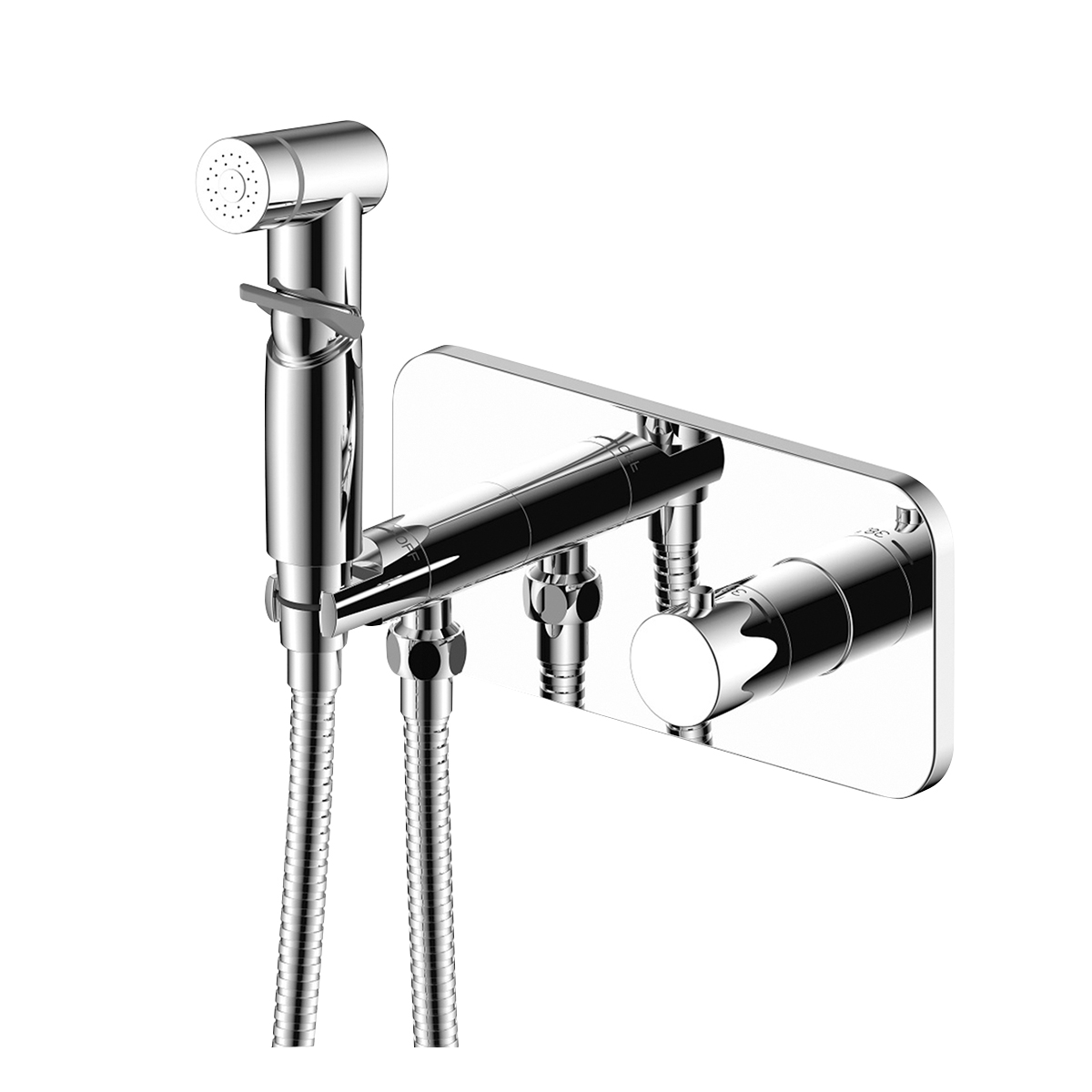 Смеситель Rossinka X25-59 термостатический с гигиеническим душем, встраиваемый, Комплектация: Термостатический картридж, Переключатель с керамическими пластинами, встроенный в держатель лейки, Аксессуары в комплекте (шланг 1,2 м, лейка гигиенического душа с нажимным механизмом), Металлическая рукоятка, Смесители Rossinka Silvermix рекомендованы «НИИ Сантехники» для установки в жилых помещениях, детских садах, школах и лечебно-профилактических заведениях.