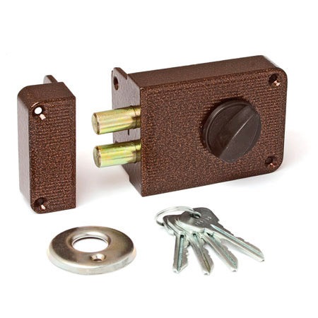 Замок накладной, ключ английский. Удаление ключевого отверстия - 60 мм. Цвет - медь.