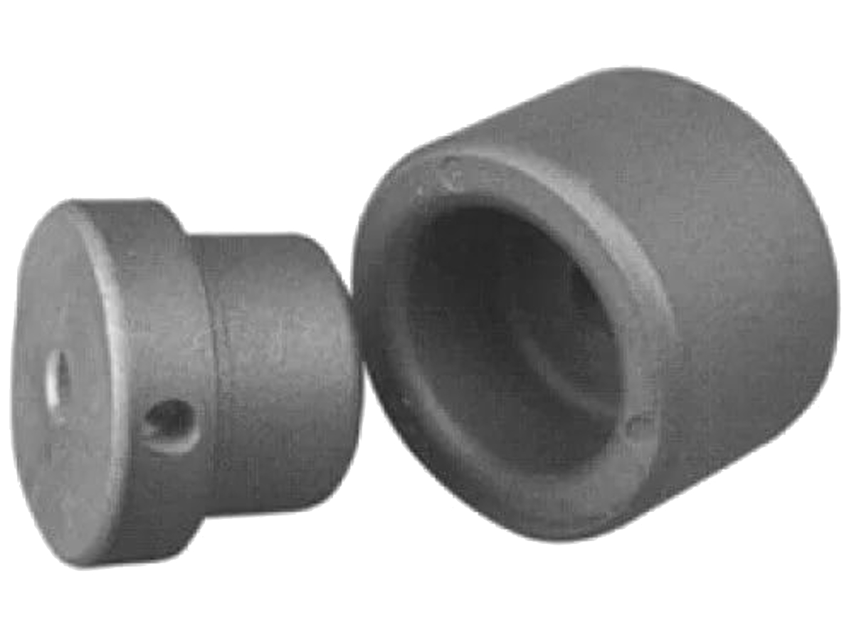 Насадка для паяльника состоит из двух деталей. Полипропиленовая труба вставляется в деталь с отверстием, а фитинг надевается на другую деталь насадки, которая с выступающим буртиком.