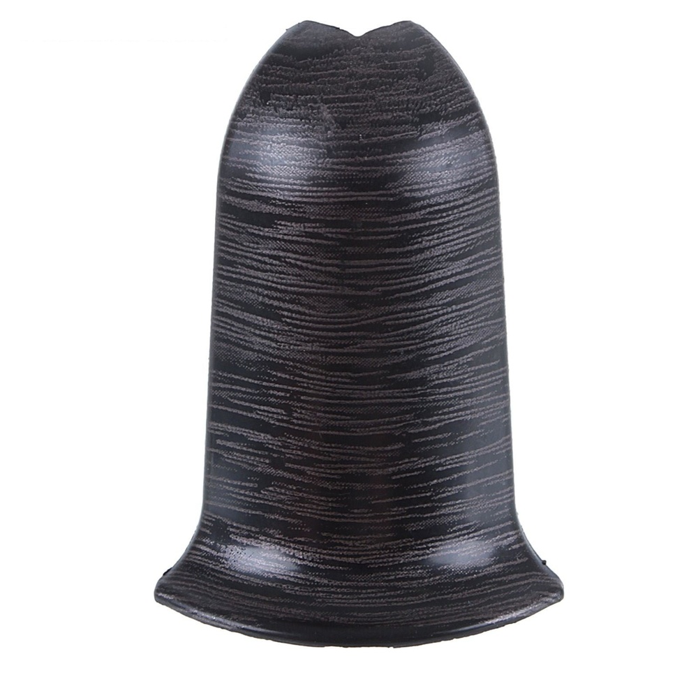 Угол выполнен из пластика, имитирующего фактуру и цвет дерева, в тон напольного плинтуса.