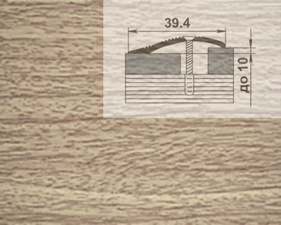 Алюминиевый профиль ПР-02.Ширина - 39,4 мм. Допустимый уровень перепада - 2,2 - 10 мм. С декоративной поверхностью. С монтажными отверстиями. Длина - 900, 1350, 1800, 2700 мм. Предназначен для декоративной стыковки любых двух разноуровневых поверхностей. Каждый профиль поставляется в индивидуальной упаковке, оснащенной пластиковым европодвесом, в комплекте с саморезами и дюбелями.