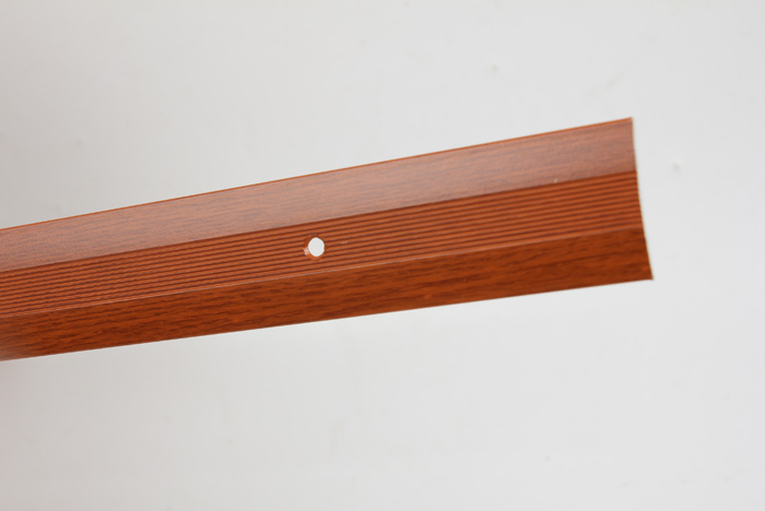 Данная модель предназначена для скрытия стыков двух одноуровневых напольных покрытий, изготовленных из различных материалов. Пороги с отверстиями для монтажа поставляются в индивидуальной упаковке с саморезами (d 3,0 мм х 25,0 мм) и дюбелями.