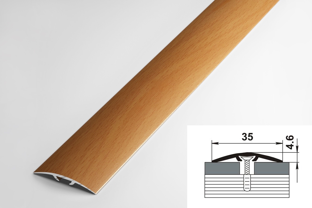Алюминиевый профиль ПС 04-3.Полукруглый, шириной 35 мм. С гладкой поверхностью. Со скрытым крепежом. Длина - 900, 1350, 1800, 2700 мм. Предназначен для декоративной стыковки любых двух одноуровневых поверхностей. Каждый профиль поставляется в индивидуальной упаковке, оснащенной пластиковым европодвесом, в комплекте с дюбель-гвоздями.