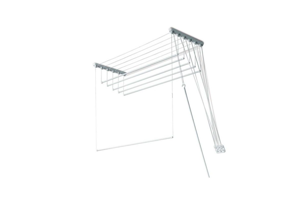 Стержни, на которые развешивается белье, опускаются до нужного уровня в зависимости от роста человека.