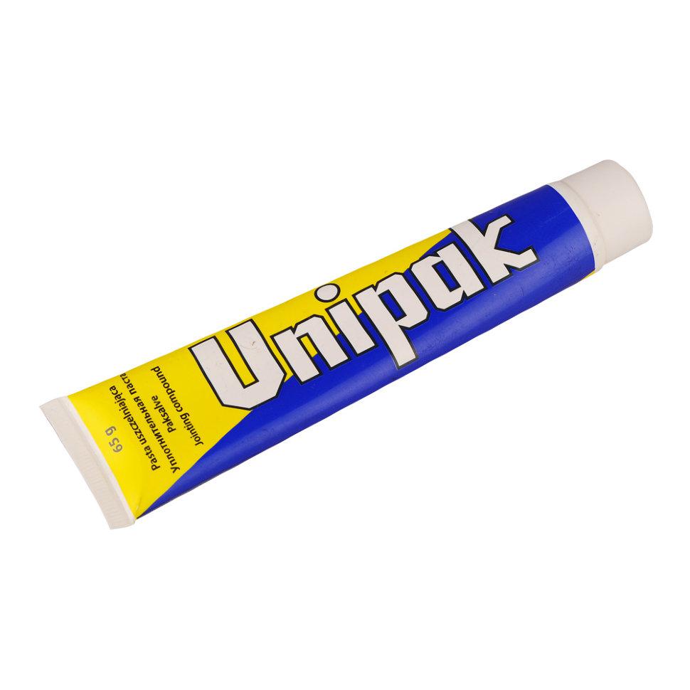 Паста «UNIPAK» применяется вместе с льняными волокнами или уплотняющим льняным шнуром для уплотнения резьбовых соединений в трубопроводных системах для горячей и холодной воды, а также пара под низким давлением. Паста обеспечивает абсолютную герметичность соединения, а также, (в отличие, например, от ФУМ ленты) большую гибкость при регулировке трубных соединений. Угол возможной юстировки соединения не менее 45° без потери герметичности. Применение пасты «UNIPAK» позволяет в будущем легко демонтировать резьбовые элементы оборудования.
