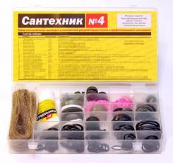 Набор прокладок САНТЕХНИК №4, (лен+паста+прокладки). Материал изделий: пластифицированный ПВХ, паронит, силикон, фторопласт, лен, резина, уплотнительная паста.