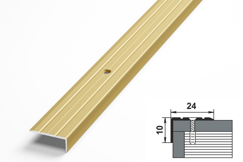 Порог угловой золото анодир-е (0,9м) с ПВХ-вставкой 20,8х35мм используется на завершающих этапах отделки помещений для придания «законченности» ремонту, являясь его «последним штрихом», наряду с плинтусами, наличниками и т.п.