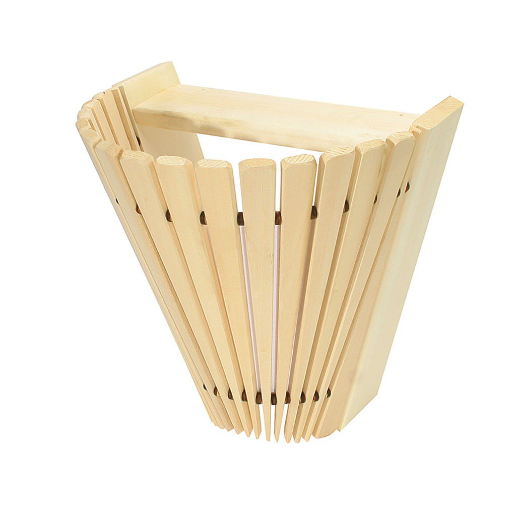 Дерево очень хорошо борется с различного рода микроорганизмами. В условиях современной бани, абажур веерный треугольный будет отличным дополнением к любому стилевому решению. Если вам необходимо красиво оформить банное помещение и создать неповторимую атмосферу уюта, то данный абажур будет отличным решением.