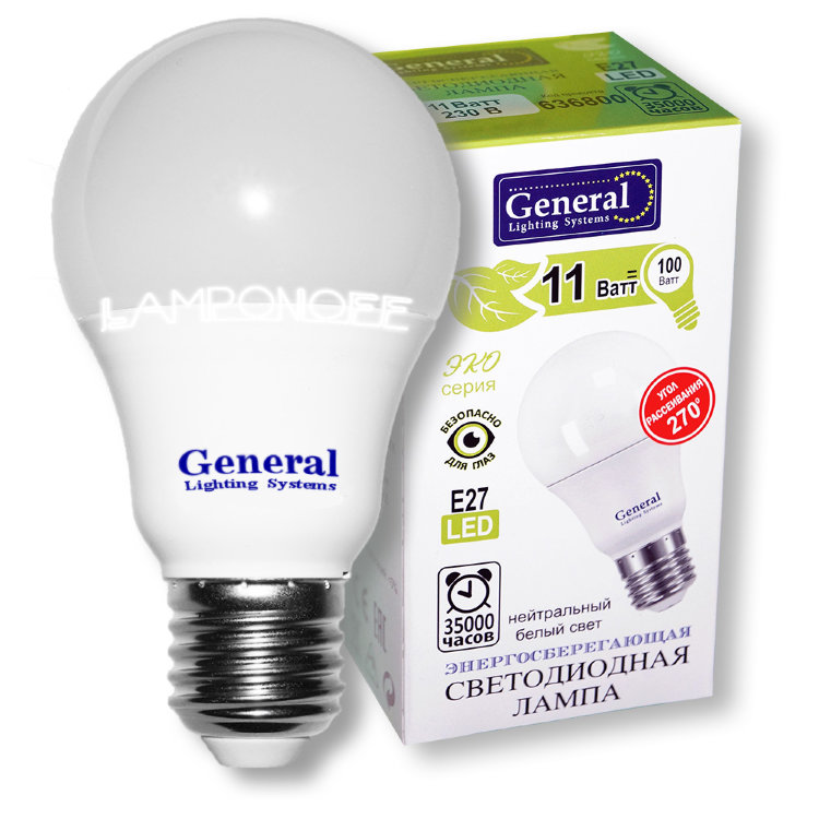 Лампа светодиодная LED General 11Вт Е27 А60 4500K нейтральный свет // Эквивалент 100Вт 636800