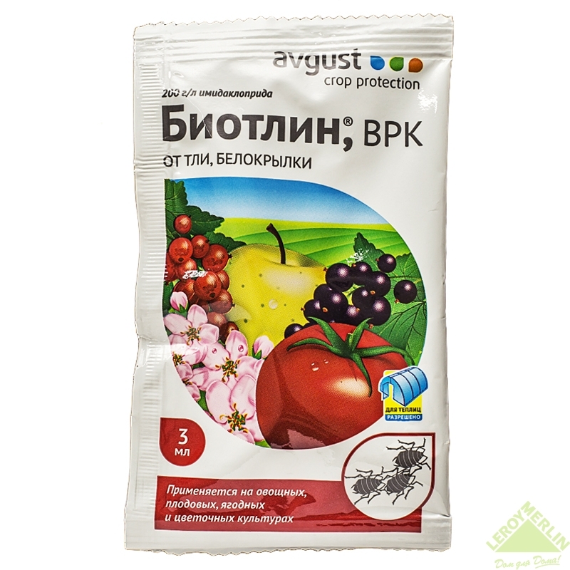 Применение: для защиты плодово-ягодных и цветущих растений от тли и белокрылки.