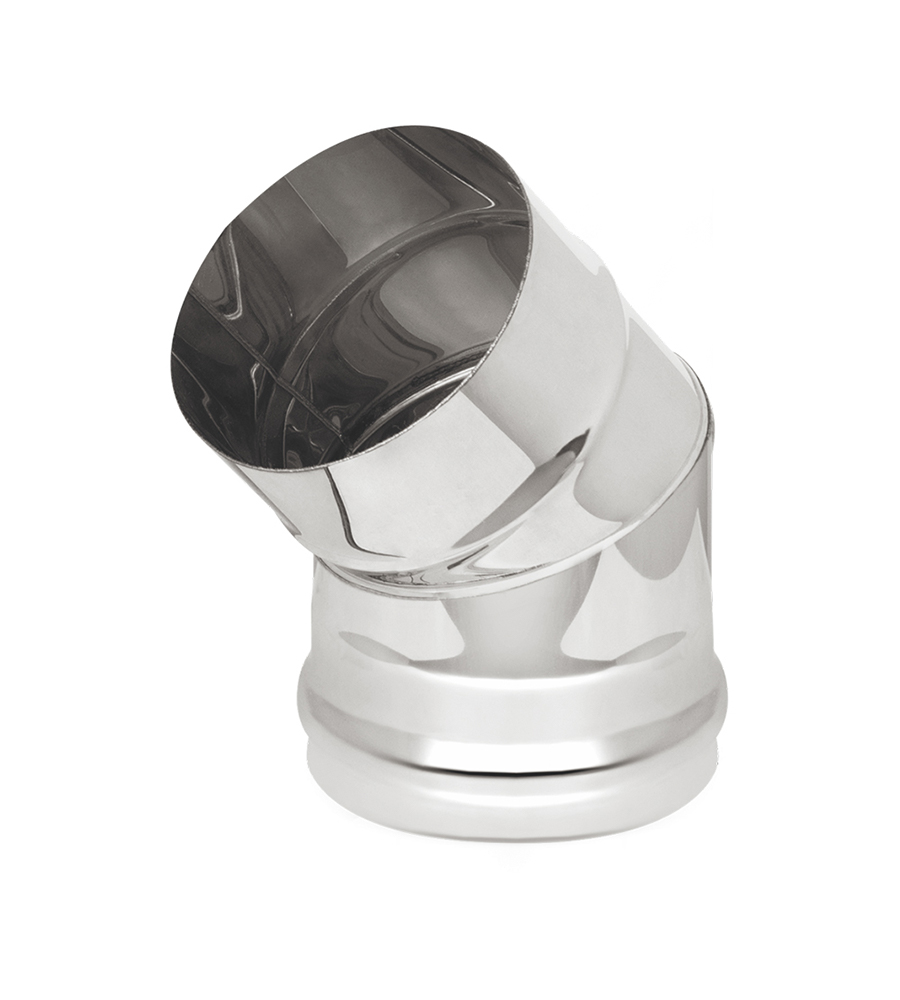 Поворотное колено используется для изменения направления труб дымохода на угол 45 градусов. Изготовлено из нержавеющей стали толщной 0,5 мм.