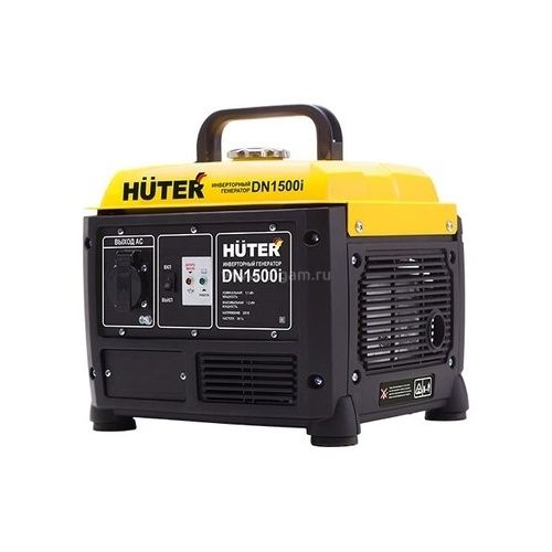 Генератор Huter DN1500i однофазный (220 вольт) мощность 1.10 кВт, максимальная 1.20 кВт ручной запуск воздушное охлаждение