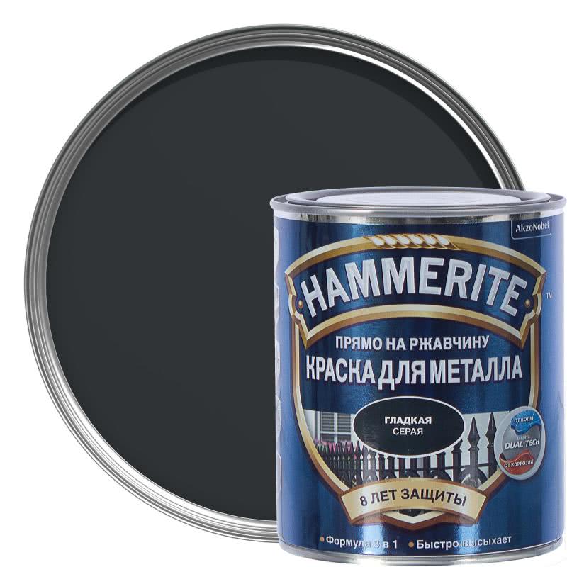 Краска по ржавчине Hammerite гладкая подходит для нанесения на ржавые неокрашенные и окрашенные ранее поверхности из чёрных металлов. Применяется для внутренних и наружных работ. Специальная формула 3 в 1 экономит ваше время и силы на подготовку поверхности.