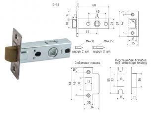 Ответная и лицевая планка изготовлены из стали и имеют пятислойное гальваническое покрытие. Оно защищает поверхность изделия от коррозии, делает ее устойчивой к царапинам и истиранию. Широкая цветовая гамма планок позволяет подобрать механизм защелки в соответствии с цветом остальной фурнитуры. Модель С-45 в производственных испытаниях показала наработку более 500 000 циклов открываний/закрываний.