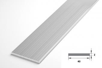 Сплошной прессованный алюминий с прямоугольником в поперечном сечении, без отверстия внутри. Планка толщиной 2 мм и шириной 40 мм. Длина планки 2 м. Поверхность профиля не декорирована и не защищена. При частых механических нагрузках она быстро затрется.