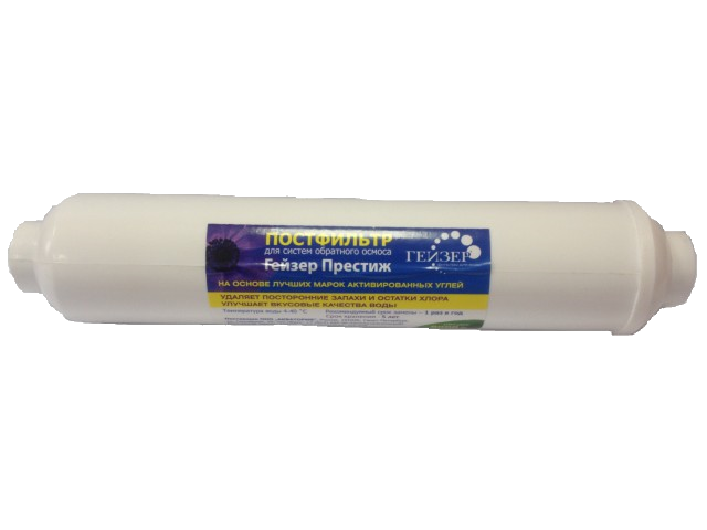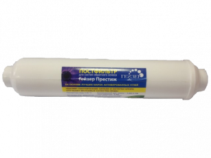 Для финишной очистки воды в системах обратного осмоса. Предназначен для удаления посторонних привкусов и запахов, которые могут появиться при длительном хранении воды в гидроаккумуляоре.