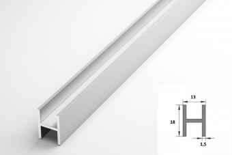 Профиль с Н-образным сечением. У двутавра толщина 1,5 мм и размеры 18х13 мм, где первая цифра – длина крайних планок, а вторая – длина перемычки, длина - 2 м. Поверхность профиля не декорирована и не защищена. При частых механических нагрузках она быстро затрется.
