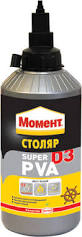 Клей Момент Супер ПВА D3 отличается хорошим показателем водостойкости и выдерживает многократное замерзание-оттаивание. Применяется для склеивания всех пород дерева, ДСП, ДВП, МДФ, фанеры, шпона, облицовочных материалов. Рекомендуется к применению для изготовления окон и дверей, мебели для кухни или ванной, для монтажного склеивания паркетных или ламинатных напольных покрытий, а также других деревянных деталей.