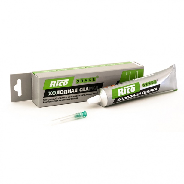 В комплект входит специальная насадка, обеспечивающая равномерное нанесение холодной сварки непосредственно в стык склеиваемых покрытий. Данный метод является самым надежным и экономичным.