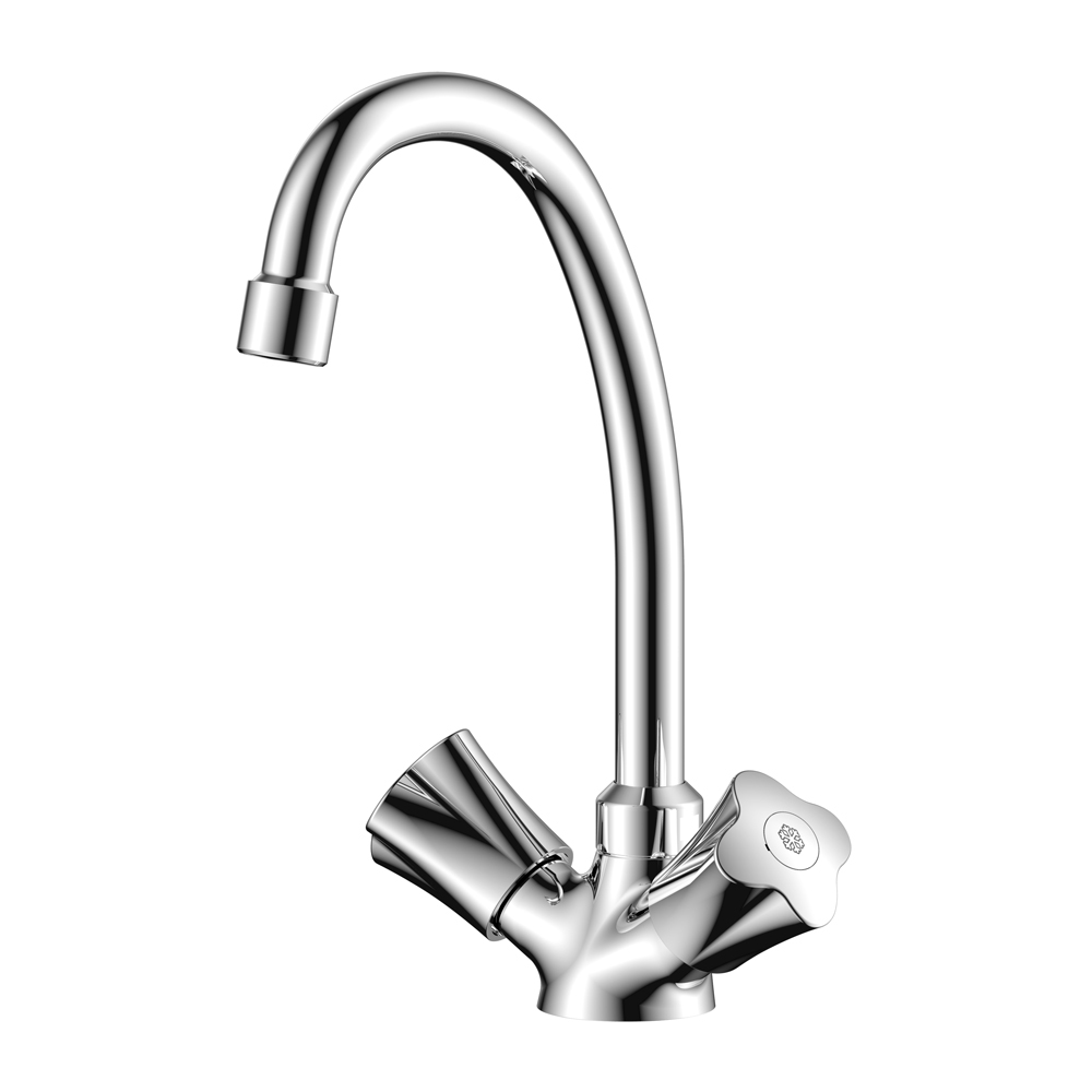 Смеситель для кухни OLIVE'S VIGO 21430VG обладает прочным и стильным корпусом. Изделие фиксируется на раковину в кухне и предназначено для подачи воды. Конструкция обладает поворотным изливом, двумя кран-буксами и пластиковым аэратором. Корпус изготовлен из латуни, покрытой двумя слоями никель-хрома для защиты смесителя от коррозии.