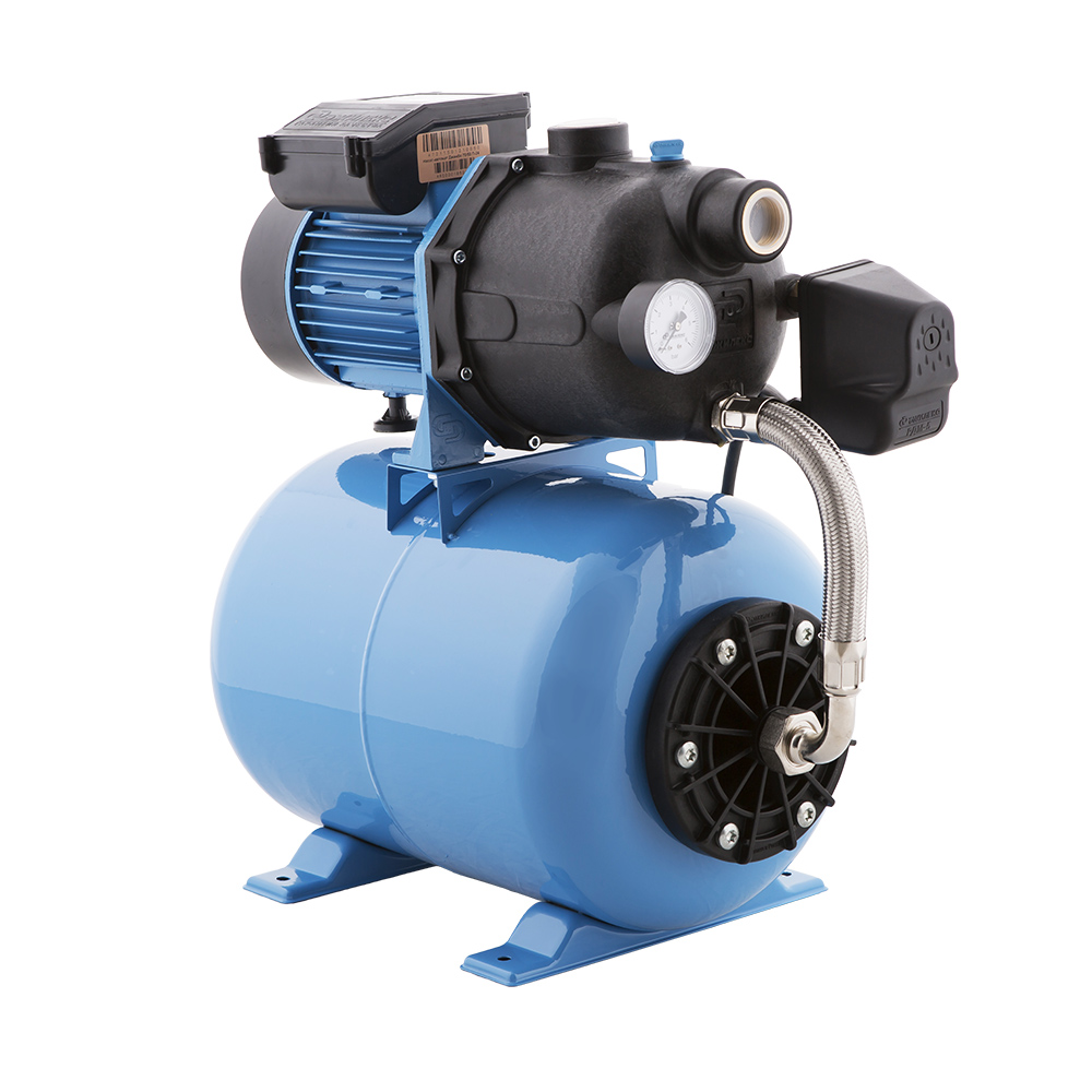 Насосная станция Джилекс Джамбо 70/50 П-24 состоит из насоса и горизонтального гидроаккумулятора объемом 24 литра, реле давления, манометра, соединительной арматуры и электрокабеля с вилкой. Имеет производительность 4,2 м3 в час и напор 50 метров, корпус насоса выполнен из пластика, а гидроаккумулятор из углеродистой стали. Используется для создания комфортных условий пользования водой при пониженном давлении в трубопроводе. В управлении работой насоса применяется реле давления РДМ-5, которое позволяет насосной станции автоматически включаться и выключаться по давлению воды.