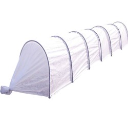 Парник "Дачник" 6 м изготовлен из пластиковых дуг с косым срезом на концах, установленных в прошитый укрывной материал третьего поколения, изготовленный на оборудовании немецкой компании.