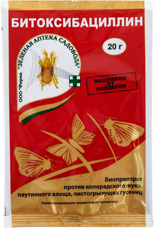 битоксибациллин – это инсектицидный биопрепарат, защищающий овощные, цветочные, лесные и лекарственные культуры от насекомых-вредителей. Особенность этого препарата – биологический инсектицид кишечного действия. В отличие от химических пестицидов битоксибациллин не содержит токсинов, а его активным веществом являются белковые кристаллы и споры микробной культуры (Bacillus thuringiensis var. thuringiensis).