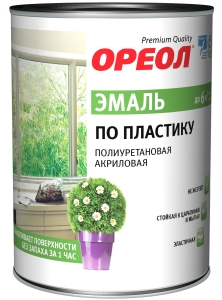 Полиуретановая акриловая эмаль по пластику «Ореол» является оптимальным решением для восстановления привлекательного внешнего вида пластиковых подоконников, окон и дверей – если необходимо скрыть дефекты поверхностей (царапины, сколы и т.д.) либо вернуть им первоначальный цвет. Она быстро сохнет (1-й слой — 1 ч, полное высыхание — 24 ч) и не желтеет со временем. Эмаль «Ореол» наносится на пластиковую поверхность с минимальными требованиями к ее подготовке (гладкую поверхность необходимо ошкурить до легкой шероховатости) кистью, валиком или распылителем.