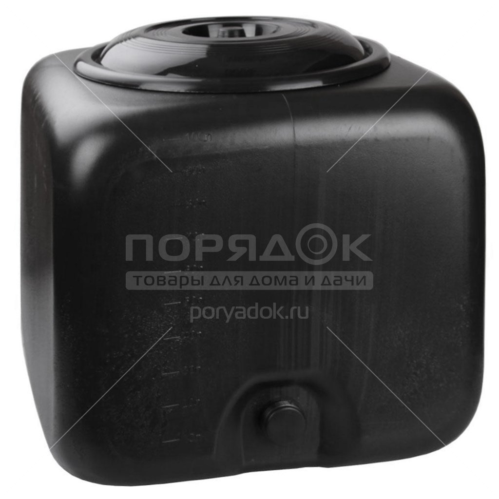 Бак выполнен из качественных полимеров, устойчив к солнечным лучам, влаге и перепадам температур. Благодаря большой горловине в него удобно наливать воду, так-же сбоку расположено отверстие для слива. На стенке изделия есть специальная шкала, для определения уровня воды.