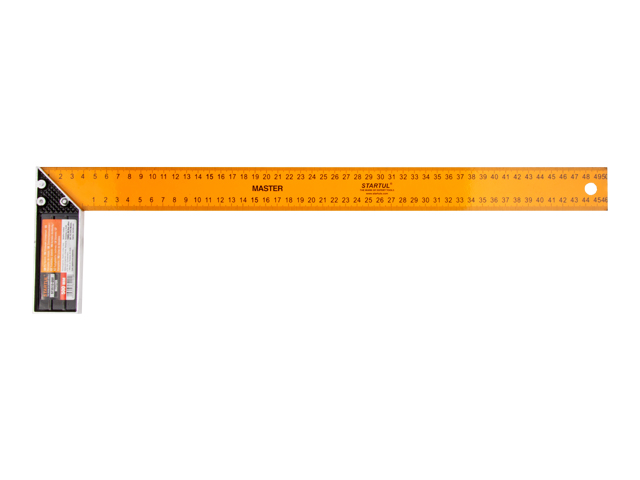 Металлический угольник с окрашенной поверхностью и двухсторонней разметкой полотна. Предназначен для разметки и проверки прямых углов, а также для проверки угла 45 градусов при обработке и сборке изделий.