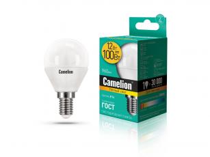 Лампа светодиодная LED Camelion 12Вт Е14 G45 шар 3000K теплый свет // эквивалент 100Вт 13693