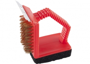 Щётка для чистки мангалов и решеток GRINDA Barbecue 427770 имеет губку для удаления жира.