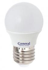 Лампа светодиодная LED General 7Вт Е27 G45 шар 4500K нейтральный свет // Эквивалент 70Вт 639800